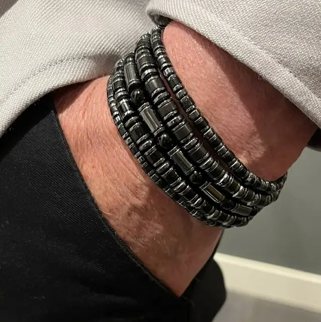 Armbandset Jackson met zwarte platte kralen 4 en 6mm en 6mm cylinders