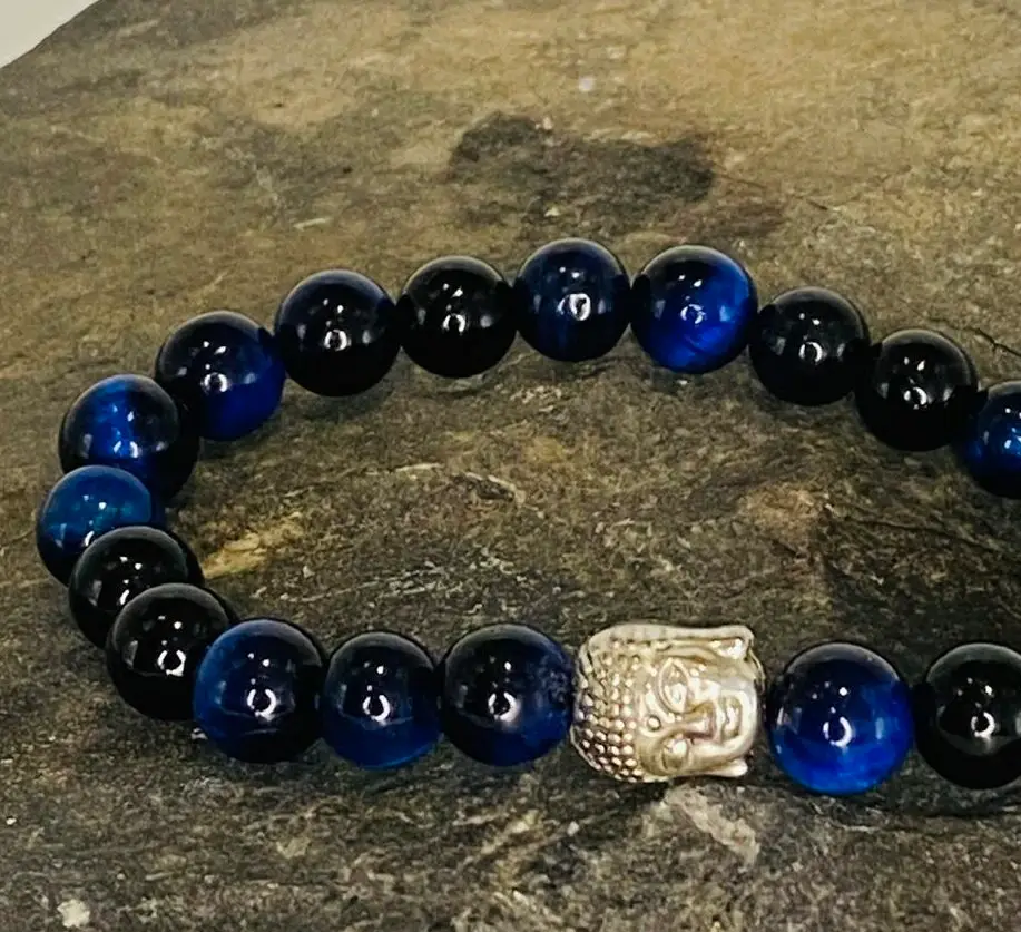 • JaXX armband Tijgeroog 8mm multicolor blauw met Sterling zilveren tussenstukjes en eindbead JaXX armband Tijgeroog 8mm multicolor blauw met Sterling zilveren tussenstukjes en eindbead €149,00