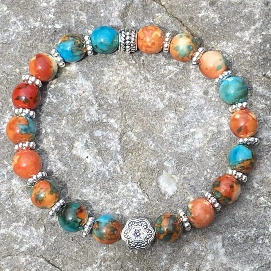 Armband Flower of Love, Orange/Turquoise