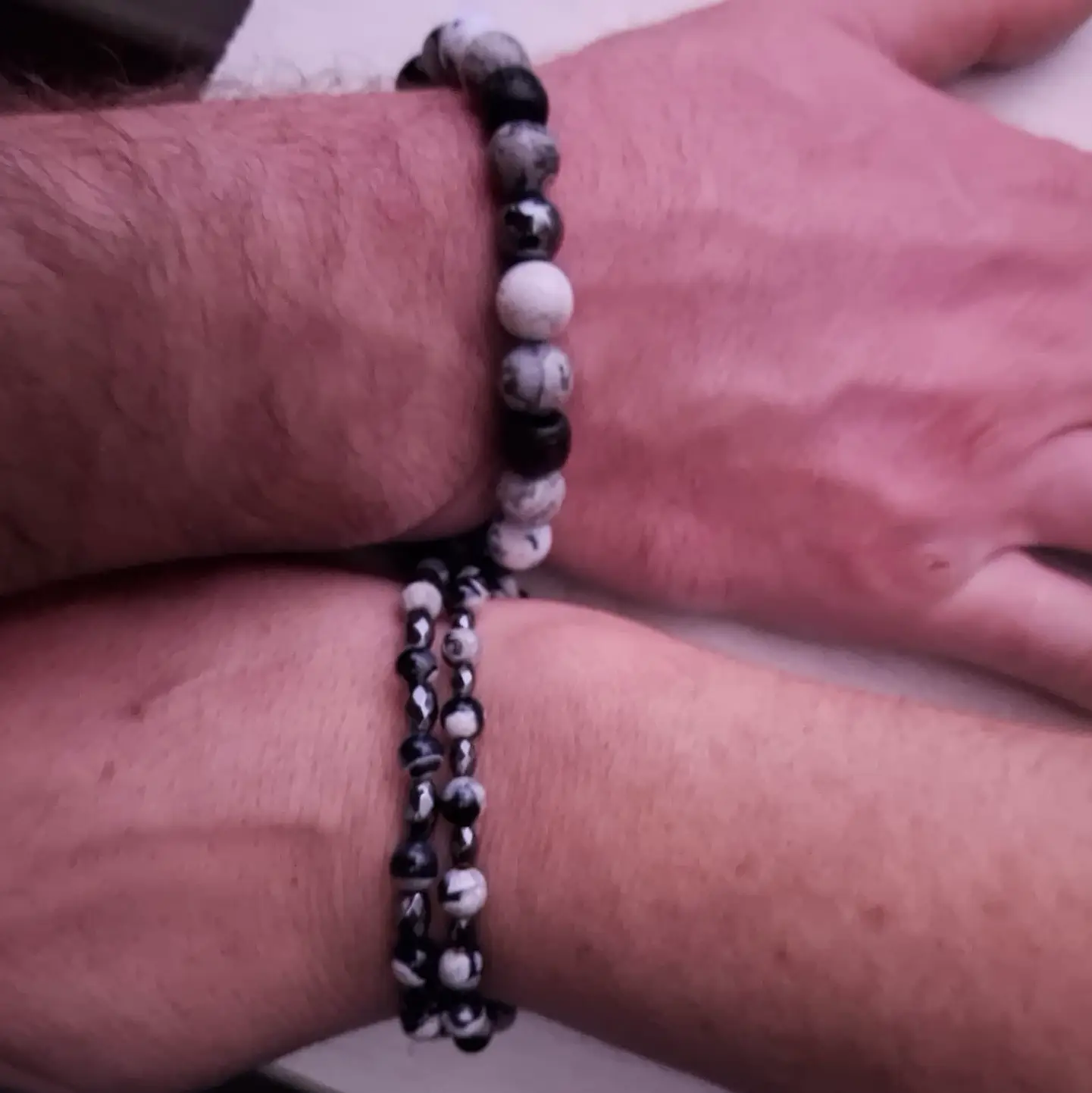 • Hand wearing turquoise beaded bracelet JaXX armbandset Cross Softtones groen groen 8 en 10mm en Sterling zilveren eindbead €44,95 - €159,00Prijsklasse: €44,95 tot €159,00