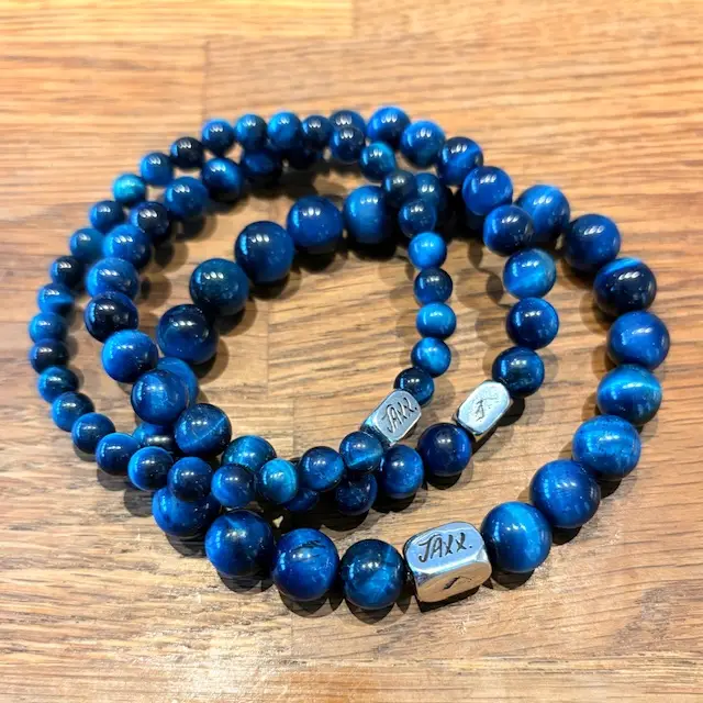 • JaXX armband Tijgeroog 8mm multicolor blauw met Sterling zilveren tussenstukjes en eindbead JaXX armband Tijgeroog 8mm multicolor blauw met Sterling zilveren tussenstukjes en eindbead €149,00