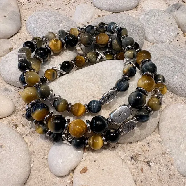 JaXX armbandset Tijgeroog multicolor blauw met sterling zilveren eindstukjes
