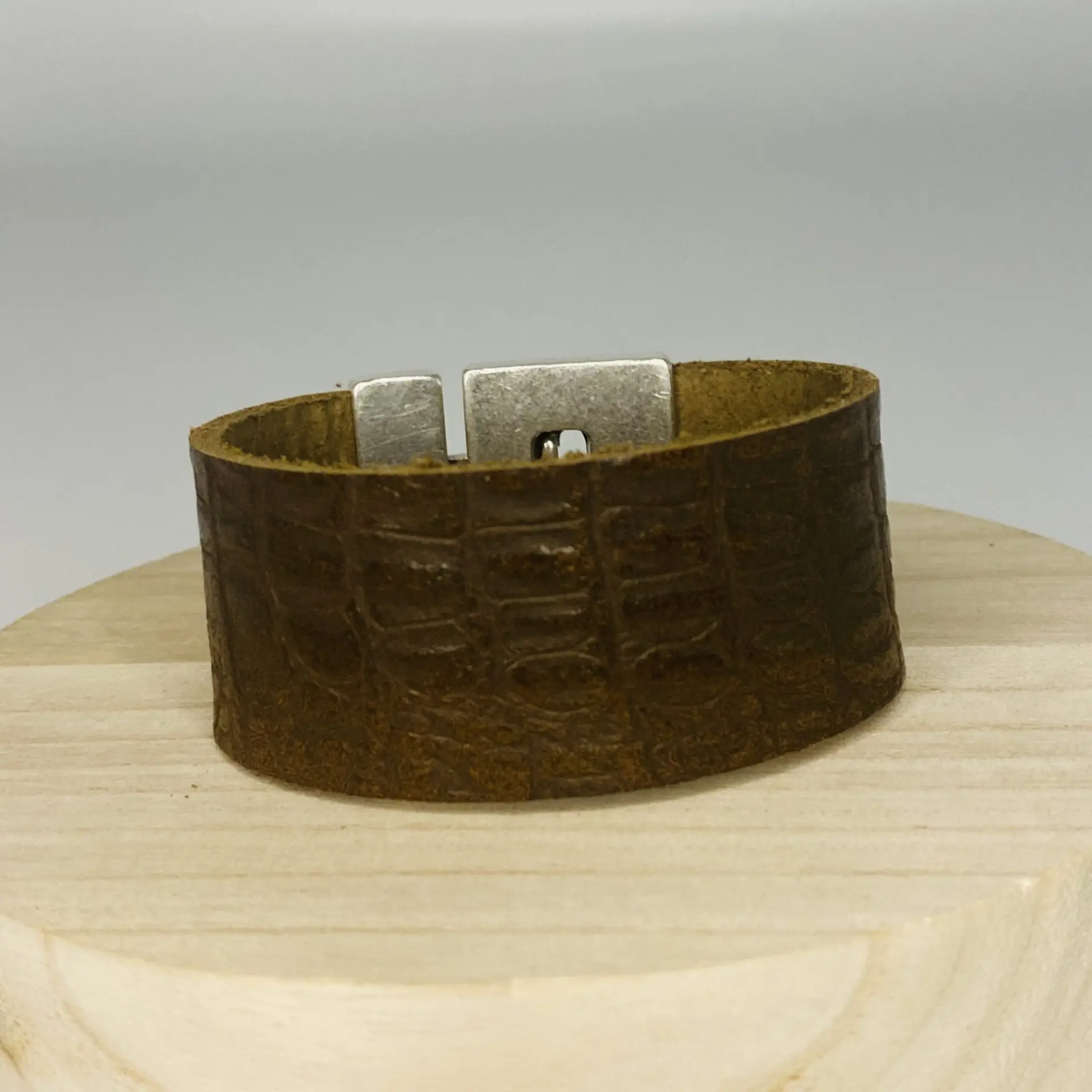 Armband leer 30 mm met T-sluiting kleur donker bruin bewerkt foto 6