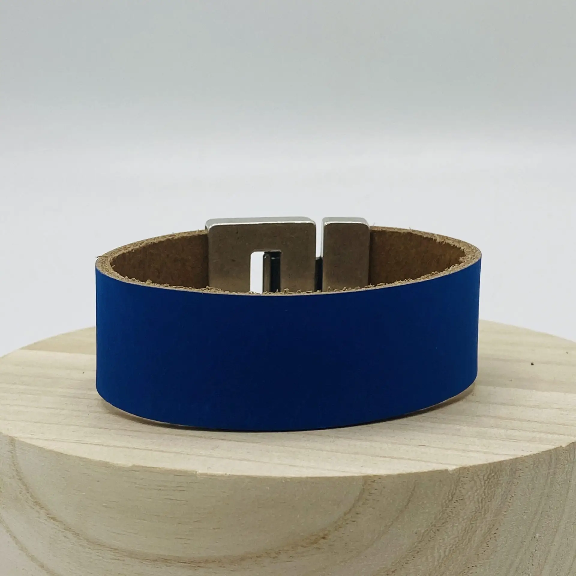 Armband leer 25 mm met T-sluiting kleur cobalt blauw foto 2