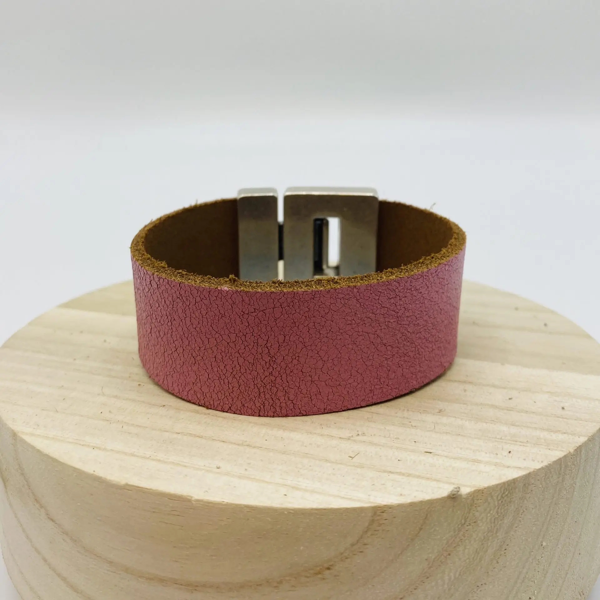 Armband leer 25 mm met T-sluiting kleur oud roze foto 2