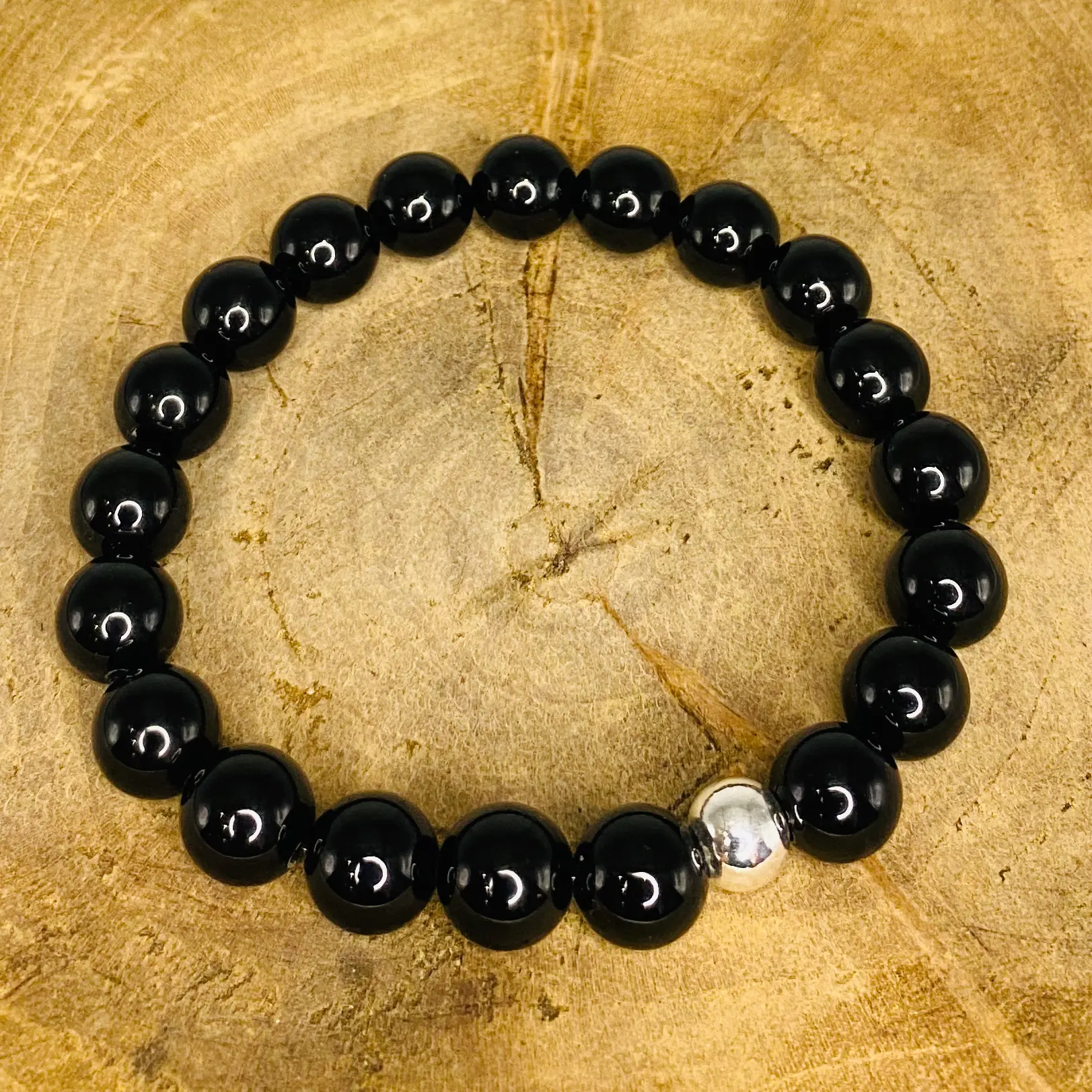 Armband model Onyx 10 mm met sterling zilveren kraal