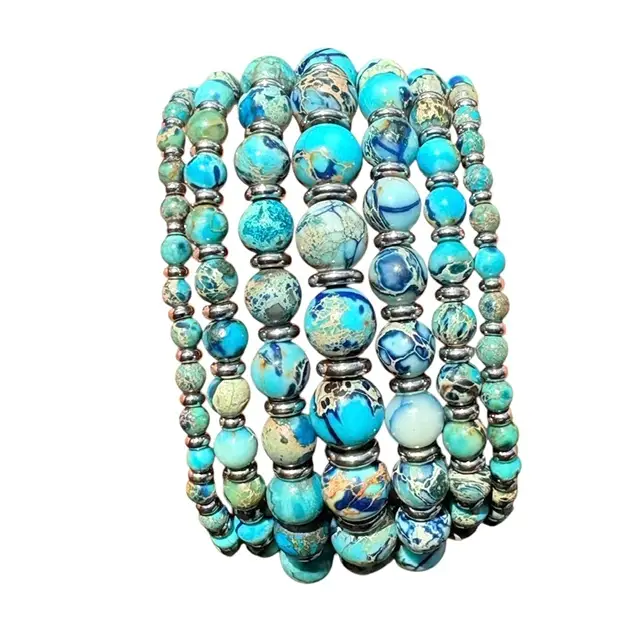 Armbandset the colours of the sea Imperial Jasper AAA 7 delig