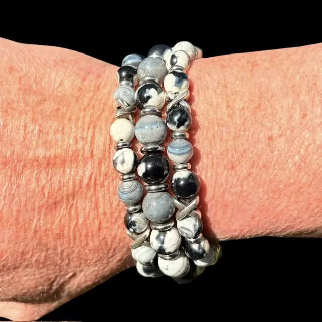• JaXX armband 6,8 en 10 mm  Black&White Agaath met Sterling zilveren eindbead JaXX armband 6,8 en 10 mm Black&White Agaath met Sterling zilveren eindbead €59,00 - €249,00Prijsklasse: €59,00 tot €249,00