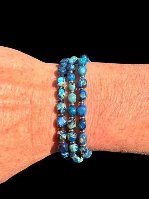 • JaXX armband 6,8 en 10 mm AAA Imperial Jasper  zeeblauw met Sterling zilveren eindbead JaXX armband 6,8 en 10 mm AAA Imperial Jasper zeeblauw met Sterling zilveren eindbead €59,00 - €249,00Prijsklasse: €59,00 tot €249,00