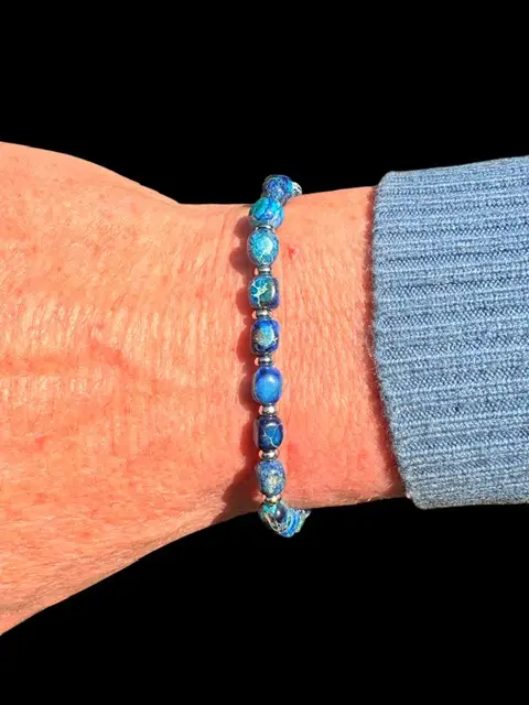• JaXX armband Tijgeroog 8mm multicolor blauw met Sterling zilveren tussenstukjes en eindbead JaXX armband Tijgeroog 8mm multicolor blauw met Sterling zilveren tussenstukjes en eindbead €149,00
