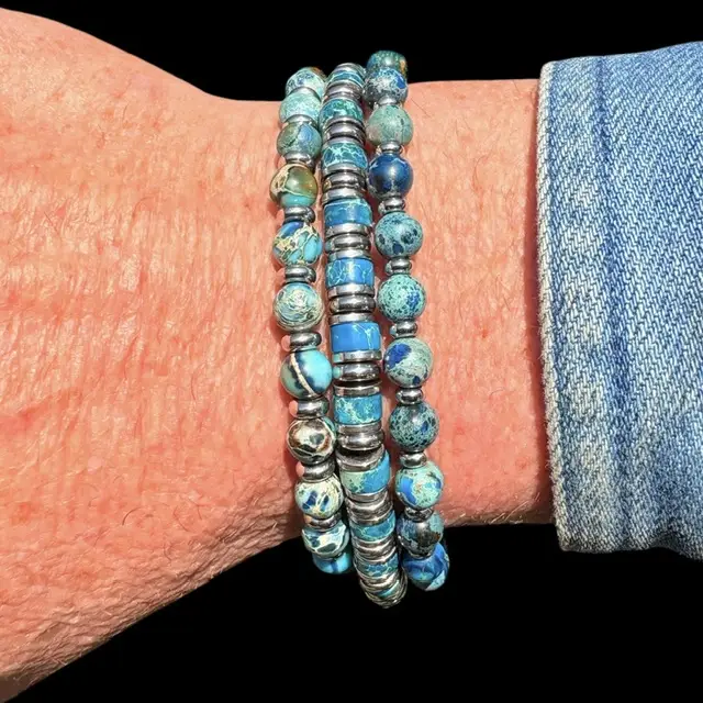 • JaXX armband 6,8 en 10 mm AAA Imperial Jasper  zeeblauw met Sterling zilveren eindbead JaXX armband 6,8 en 10 mm AAA Imperial Jasper zeeblauw met Sterling zilveren eindbead €59,00 - €249,00Prijsklasse: €59,00 tot €249,00