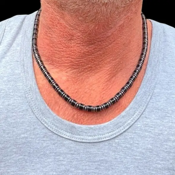 Ketting Jackson platte kralen 6mm verstelbaar van 50-70 cm Black Onyx met Hematiet