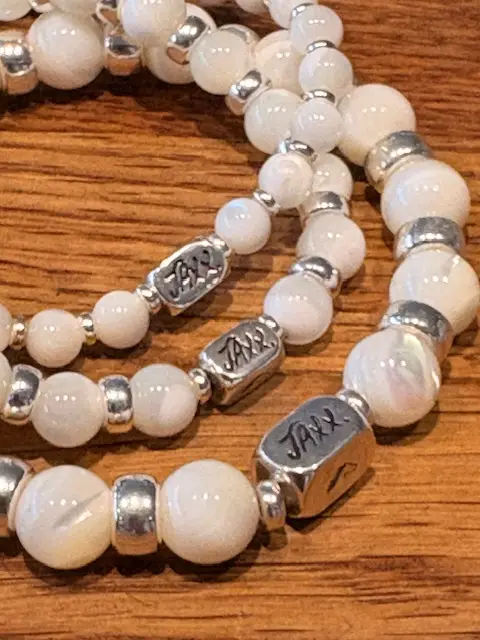 JaXX armband Bouke met Parelmoer kralen en Sterling zilveren tussenstukjes en eindbead