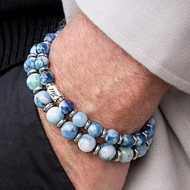 JaXX Armband Jaspis Ocean blue met Sterling zilveren eindbead