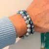 JaXX armband met blauwe Keizerlijke Jaspis AAA 6,8 en 10mm met Sterling zillveren eindbead
