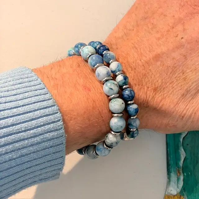 JaXX Armband Jaspis Ocean blue met Sterling zilveren eindbead