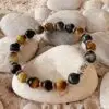 JaXX armband Tijgeroog multicolor blauw AAAA 8 en 10mm met RVS Spacers en Sterling zillveren eindbead