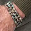 JaXX armband Bouke met Parelmoer kralen 6,8 en 10mm met Sterling zilveren tussenstukjes 4,6 of 8mm en zilveren eindbead